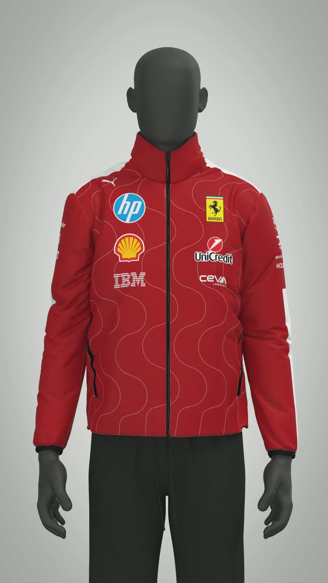 The official 2025 Scuderia Ferrari Team Jacket from PUMA, recognisable as being based on the look worn by the team throughout the 2025 Formula 1 season. The Team Jacketcomes in Ferrari's 2025 Scuderia Black * Red, with all the official Ferrari and PUMA branding.